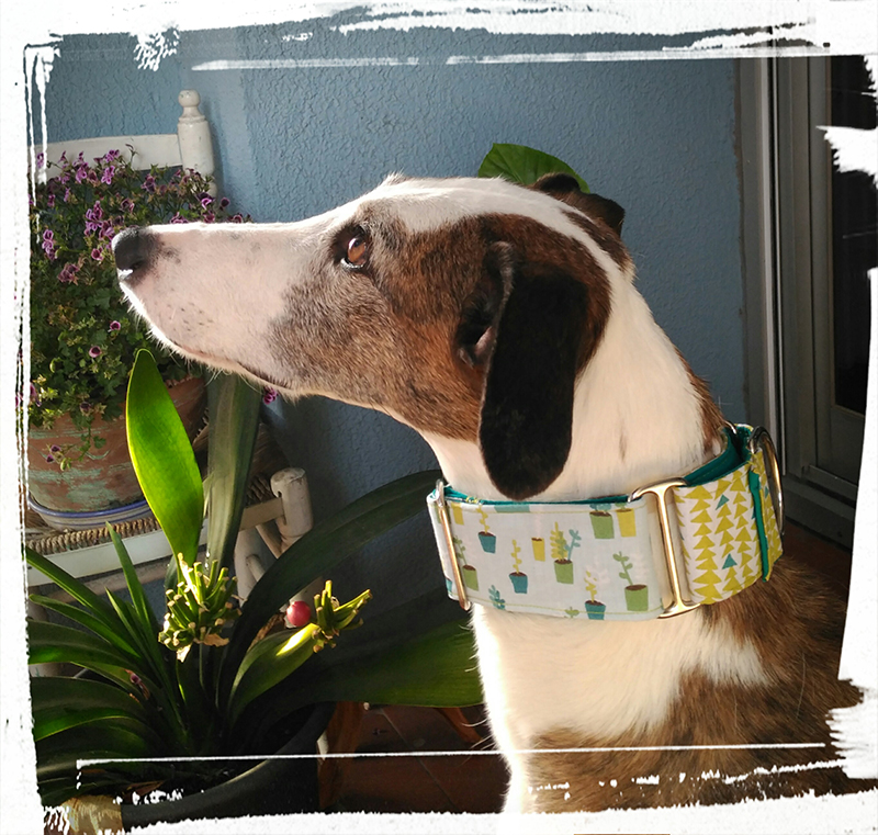 plantes Collar de nylon folrat amb tela de plantes i peces reforçades. Disponibilitat d'ample de 5cm: 25€, 4cm: 23€